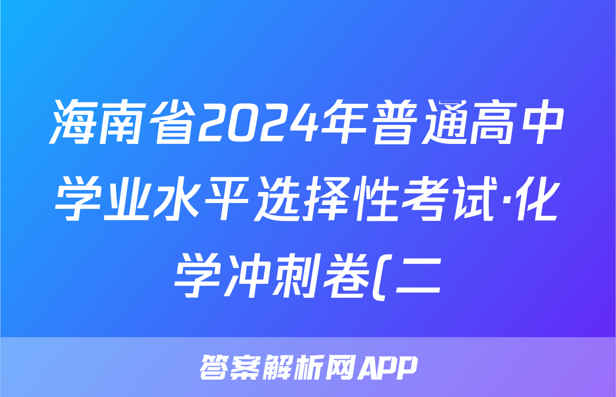 海南省2024年普通高中学业水平选择性考试·化学冲刺卷(二)2[24·(新高考)CCJ·化学·HAIN]答案正在持续更新,目前2024届最新高考模拟示范卷答案网为大家整理了相关试题及答案,供大家查缺补漏,高效提升成绩。