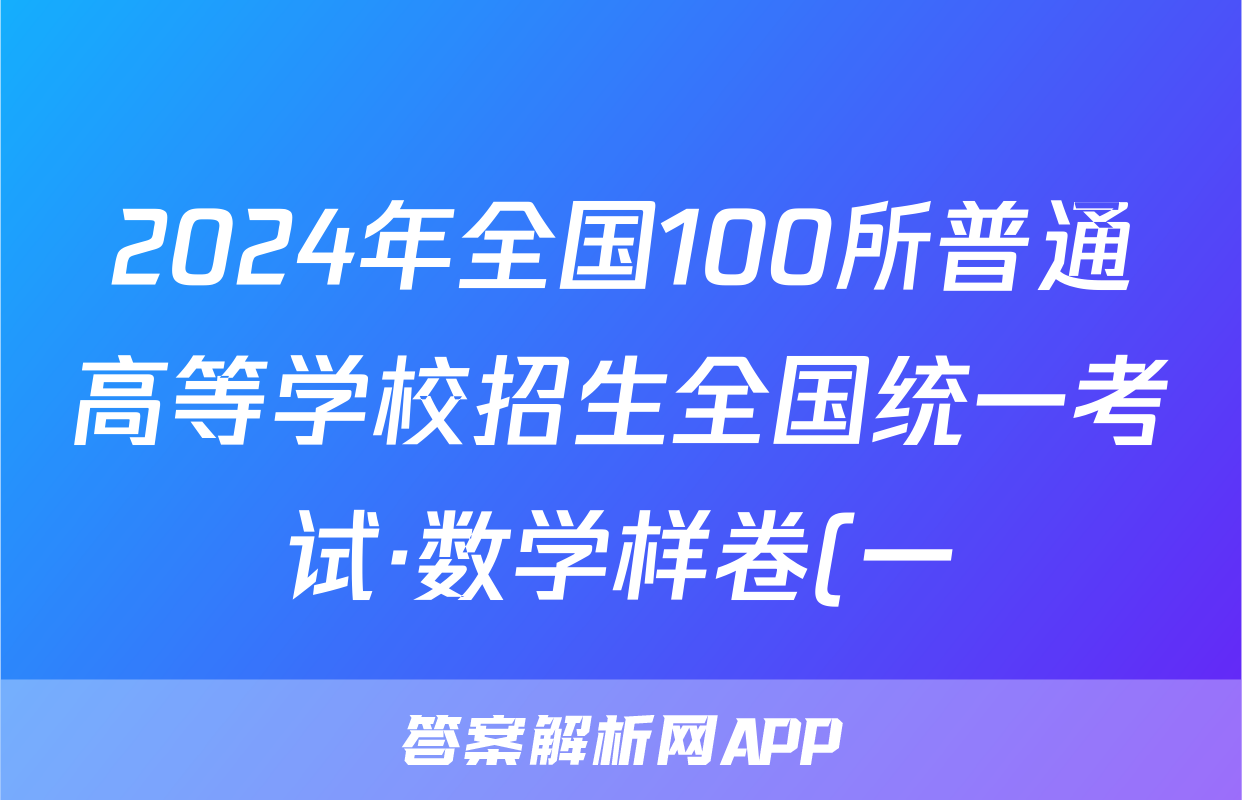 2024年全国100所普通高等学校招生全国统一考试·数学样卷(一)1[24·(新高考)高考样卷·数学·Y]答案正在持续更新,目前2024届最新高考模拟示范卷答案网为大家整理了相关试题及答案,供大家查缺补漏,高效提升成绩。