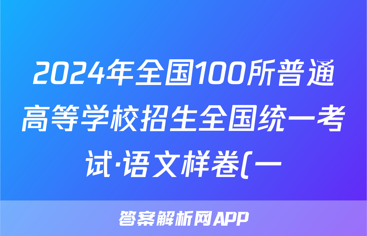 2024年全国100所普通高等学校招生全国统一考试·语文样卷(一)1[24·(新高考)高考样卷·语文·Y]试题正在持续更新,目前2024届最新高考模拟示范卷答案网为大家整理了相关试题及答案,供大家查缺补漏,高效提升成绩。