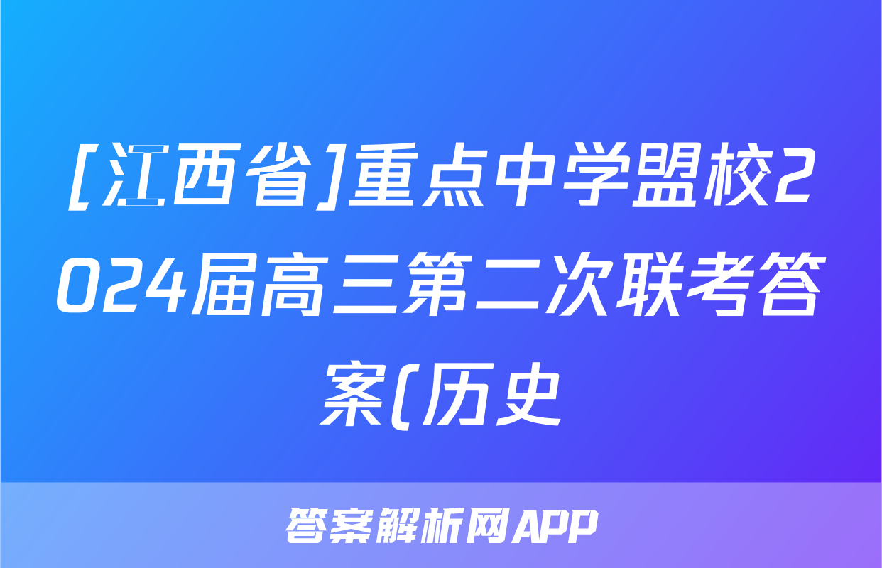 [江西省]重点中学盟校2024届高三第二次联考答案(历史)正在持续更新,目前2024届最新高考模拟示范卷答案网为大家整理了相关试题及答案,供大家查缺补漏,高效提升成绩。
