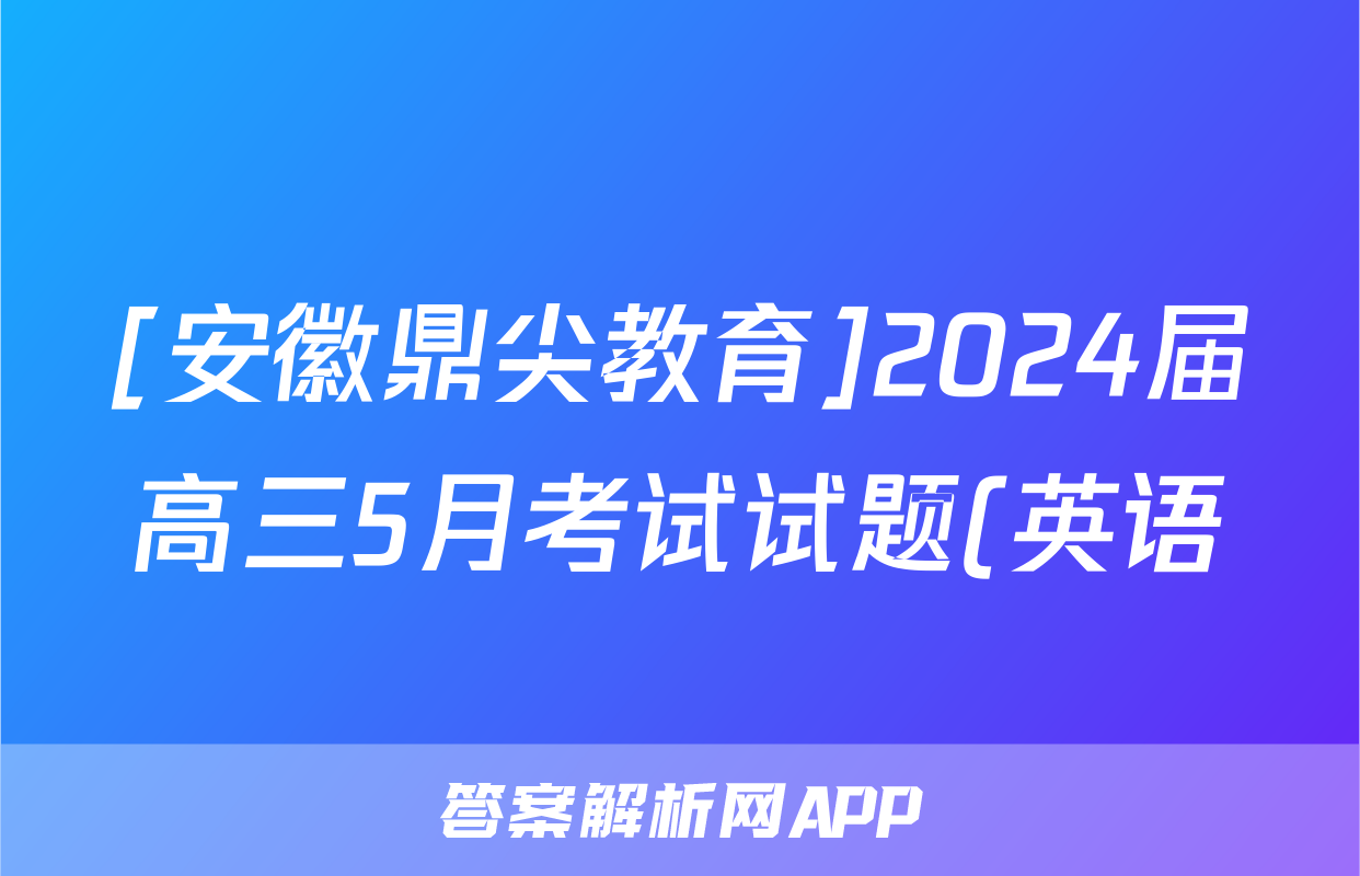 [安徽鼎尖教育]2024届高三5月考试试题(英语)