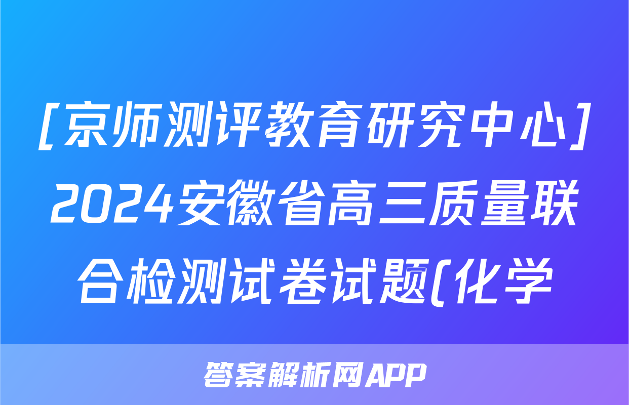 2、[京师测评教育研究中心]2024安徽省高三质量联合检测试卷答案(化学)