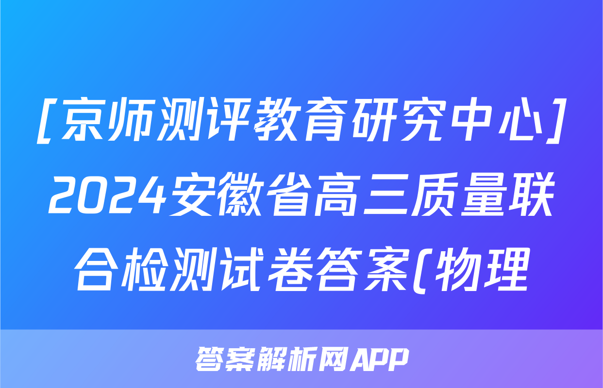 [京师测评教育研究中心]2024安徽省高三质量联合检测试卷答案(物理)