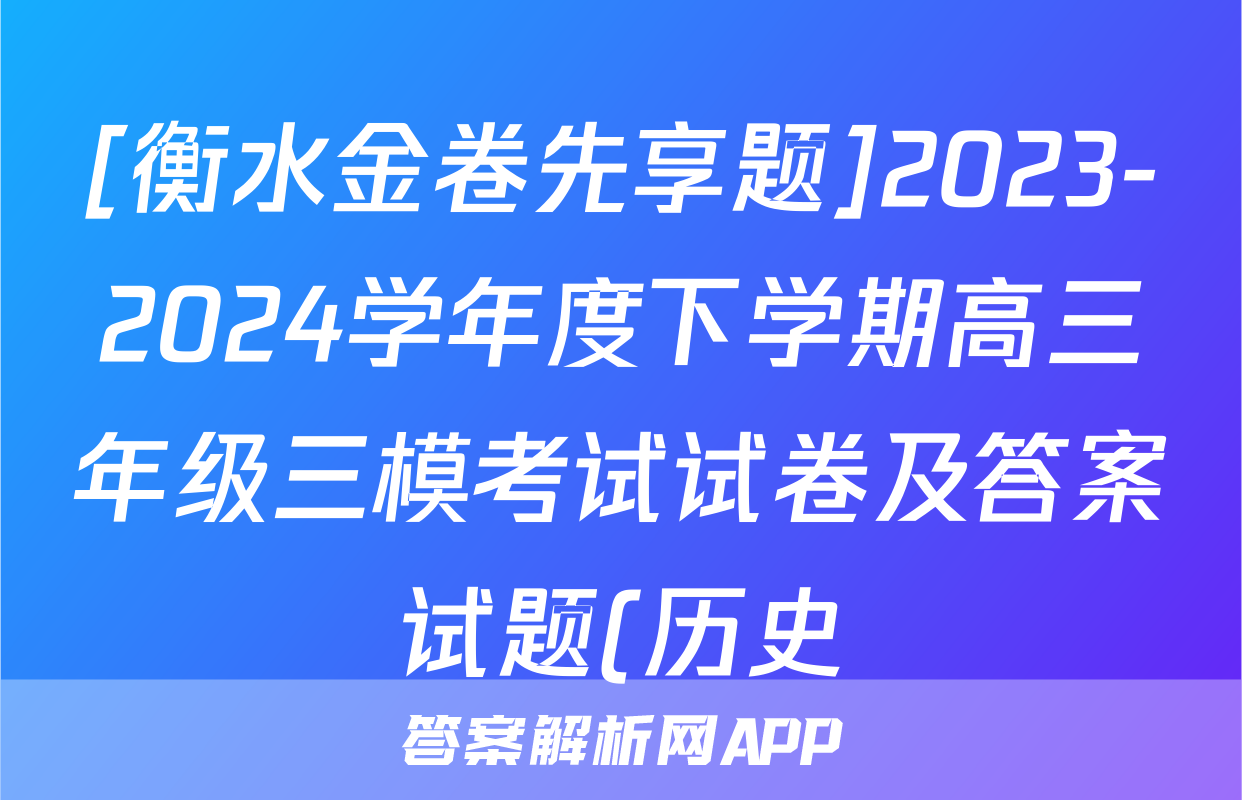 [衡水金卷先享题]2023-2024学年度下学期高三年级三模考试试卷及答案试题(历史)正在持续更新,目前2024届最新高考模拟示范卷答案网为大家整理了相关试题及答案,供大家查缺补漏,高效提升成绩。