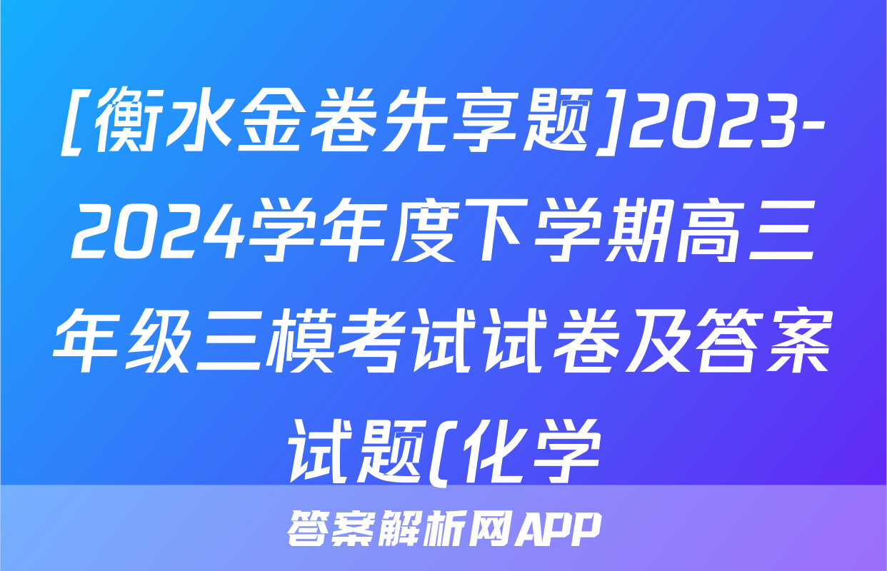 [衡水金卷先享题]2023-2024学年度下学期高三年级三模考试试卷及答案试题(化学)正在持续更新,目前2024届最新高考模拟示范卷答案网为大家整理了相关试题及答案,供大家查缺补漏,高效提升成绩。