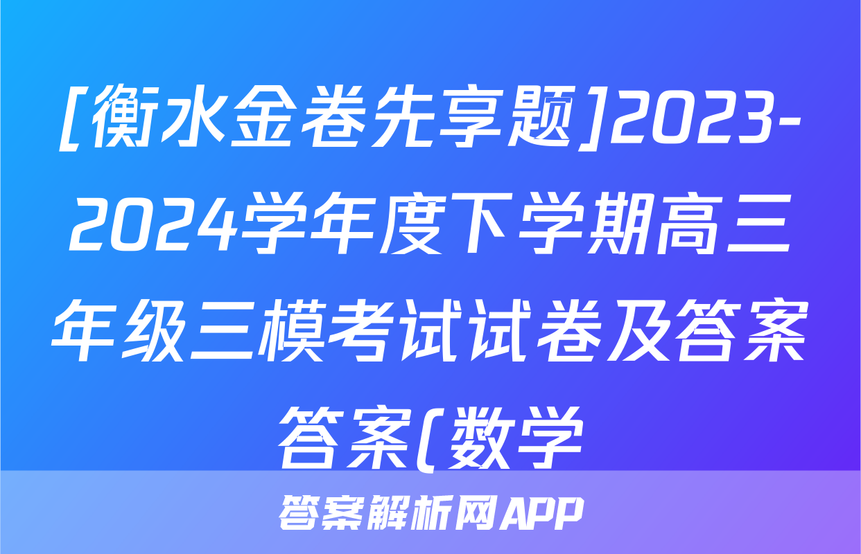 [衡水金卷先享题]2023-2024学年度下学期高三年级三模考试试卷及答案答案(数学)正在持续更新,目前2024届最新高考模拟示范卷答案网为大家整理了相关试题及答案,供大家查缺补漏,高效提升成绩。