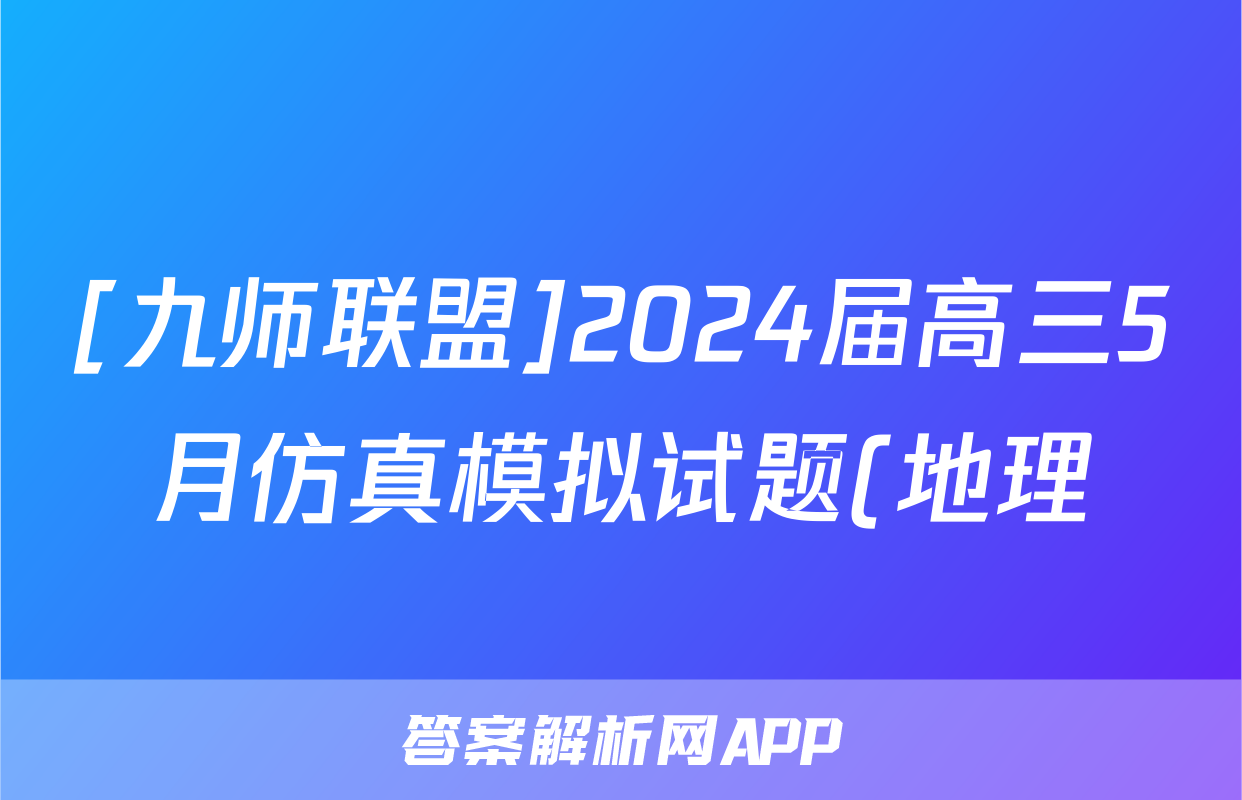 [九师联盟]2024届高三5月仿真模拟试题(地理)正在持续更新,目前2024届最新高考模拟示范卷答案网为大家整理了相关试题及答案,供大家查缺补漏,高效提升成绩。