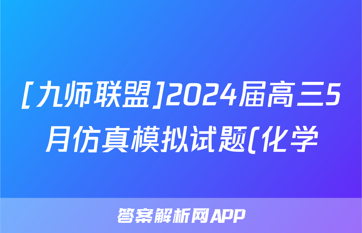 [九师联盟]2024届高三5月仿真模拟试题(化学)正在持续更新,目前2024届最新高考模拟示范卷答案网为大家整理了相关试题及答案,供大家查缺补漏,高效提升成绩。