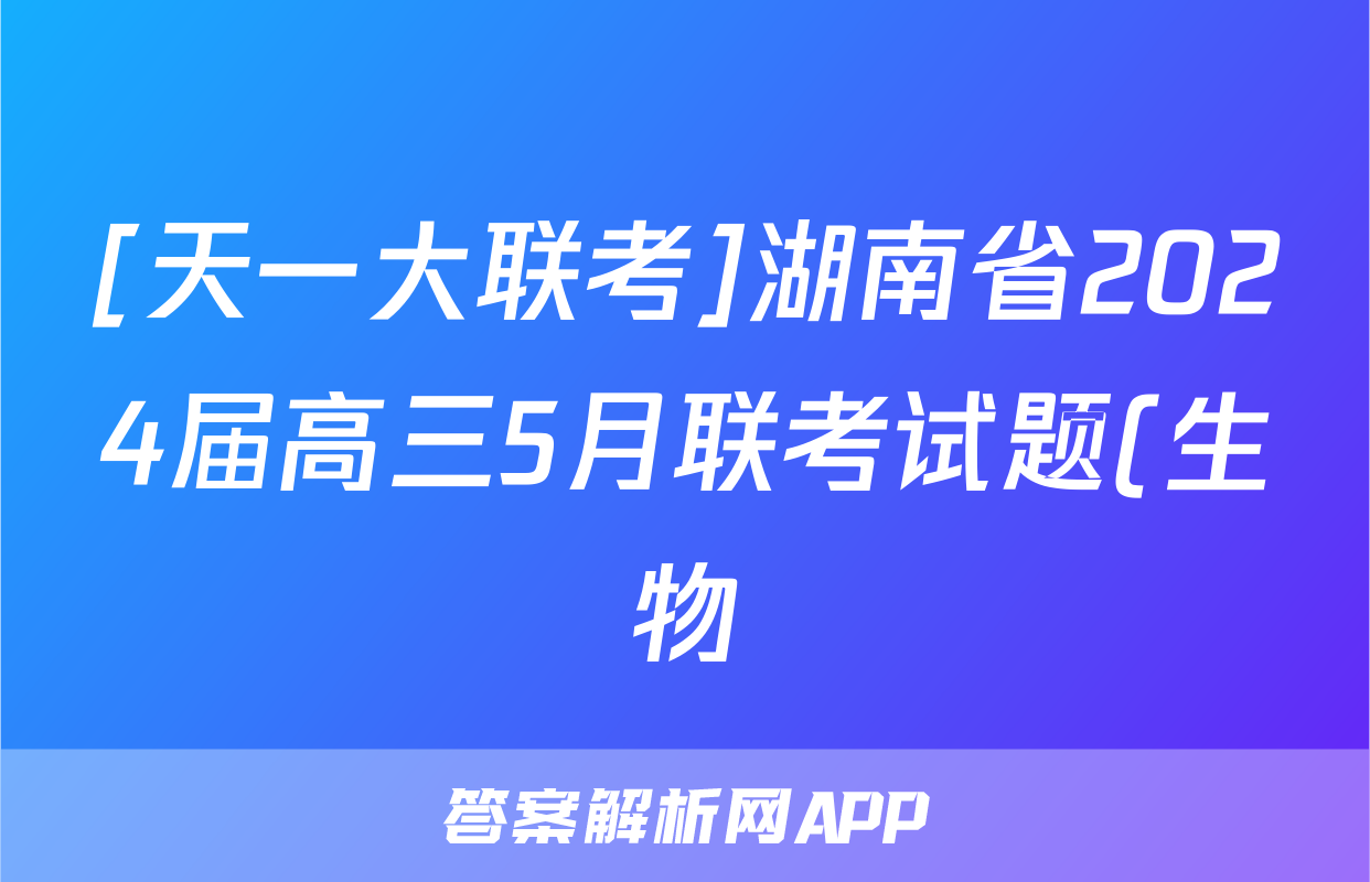 [天一大联考]湖南省2024届高三5月联考试题(生物)正在持续更新,目前2024届最新高考模拟示范卷答案网为大家整理了相关试题及答案,供大家查缺补漏,高效提升成绩。