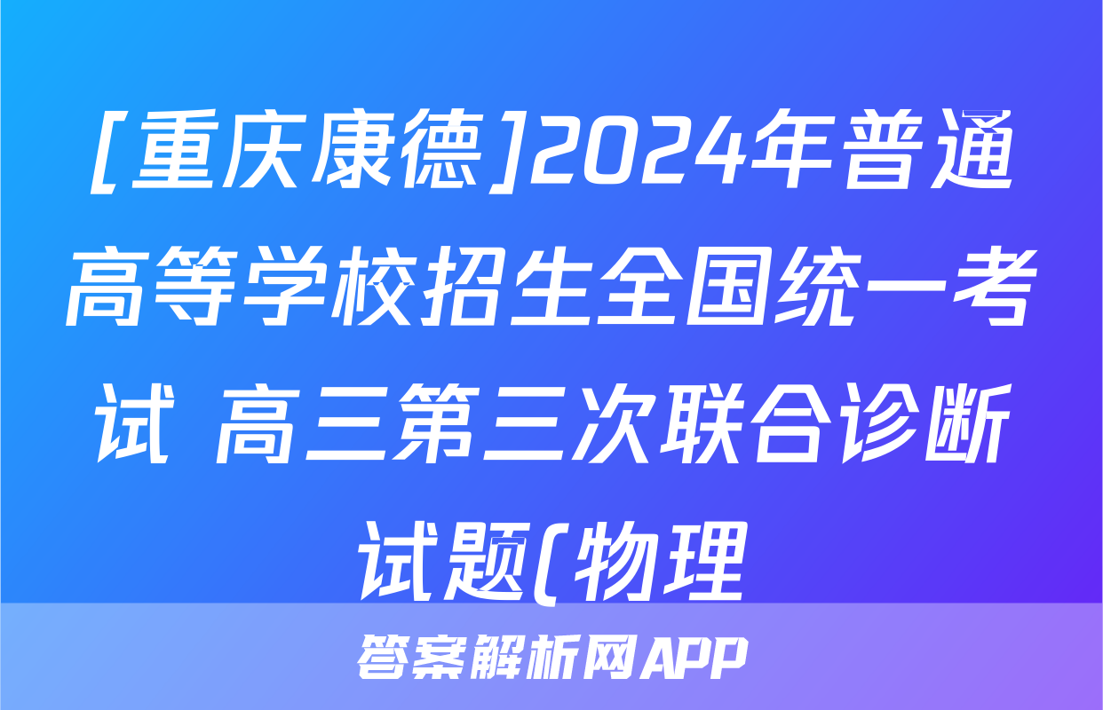 [重庆康德]2024年普通高等学校招生全国统一考试 高三第三次联合诊断试题(物理)正在持续更新,目前2024届最新高考模拟示范卷答案网为大家整理了相关试题及答案,供大家查缺补漏,高效提升成绩。