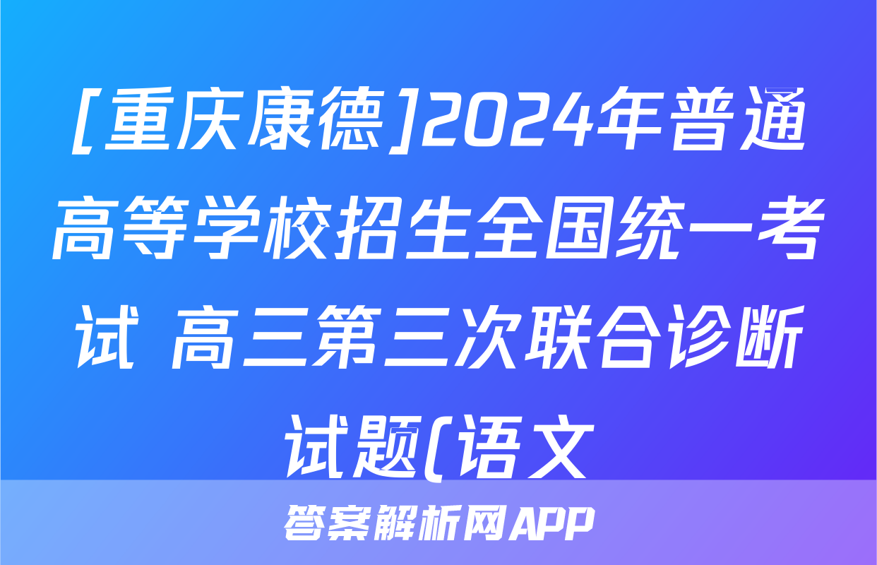 [重庆康德]2024年普通高等学校招生全国统一考试 高三第三次联合诊断试题(语文)正在持续更新,目前2024届最新高考模拟示范卷答案网为大家整理了相关试题及答案,供大家查缺补漏,高效提升成绩。