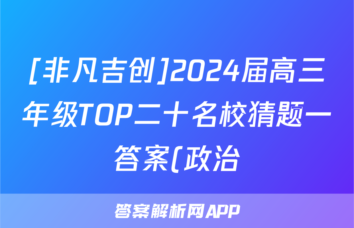 [非凡吉创]2024届高三年级TOP二十名校猜题一答案(政治)正在持续更新,目前2024届最新高考模拟示范卷答案网为大家整理了相关试题及答案,供大家查缺补漏,高效提升成绩。