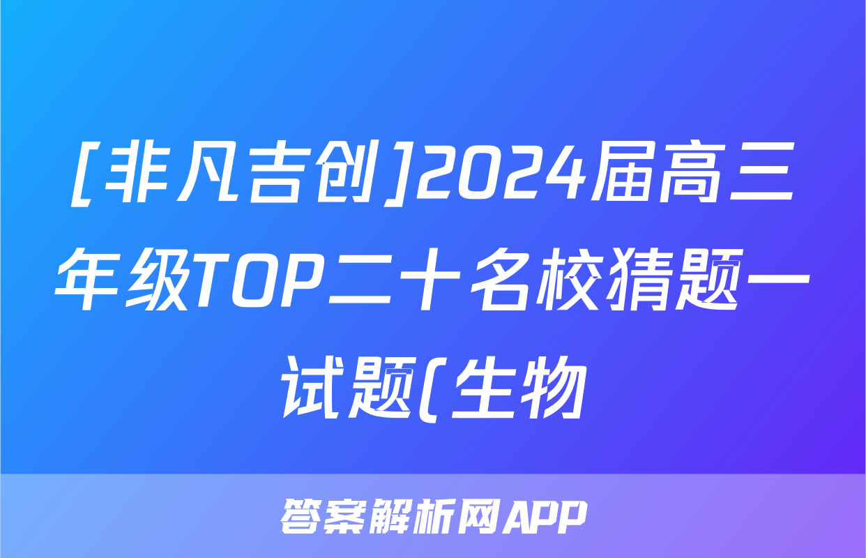 [非凡吉创]2024届高三年级TOP二十名校猜题一试题(生物)正在持续更新,目前2024届最新高考模拟示范卷答案网为大家整理了相关试题及答案,供大家查缺补漏,高效提升成绩。