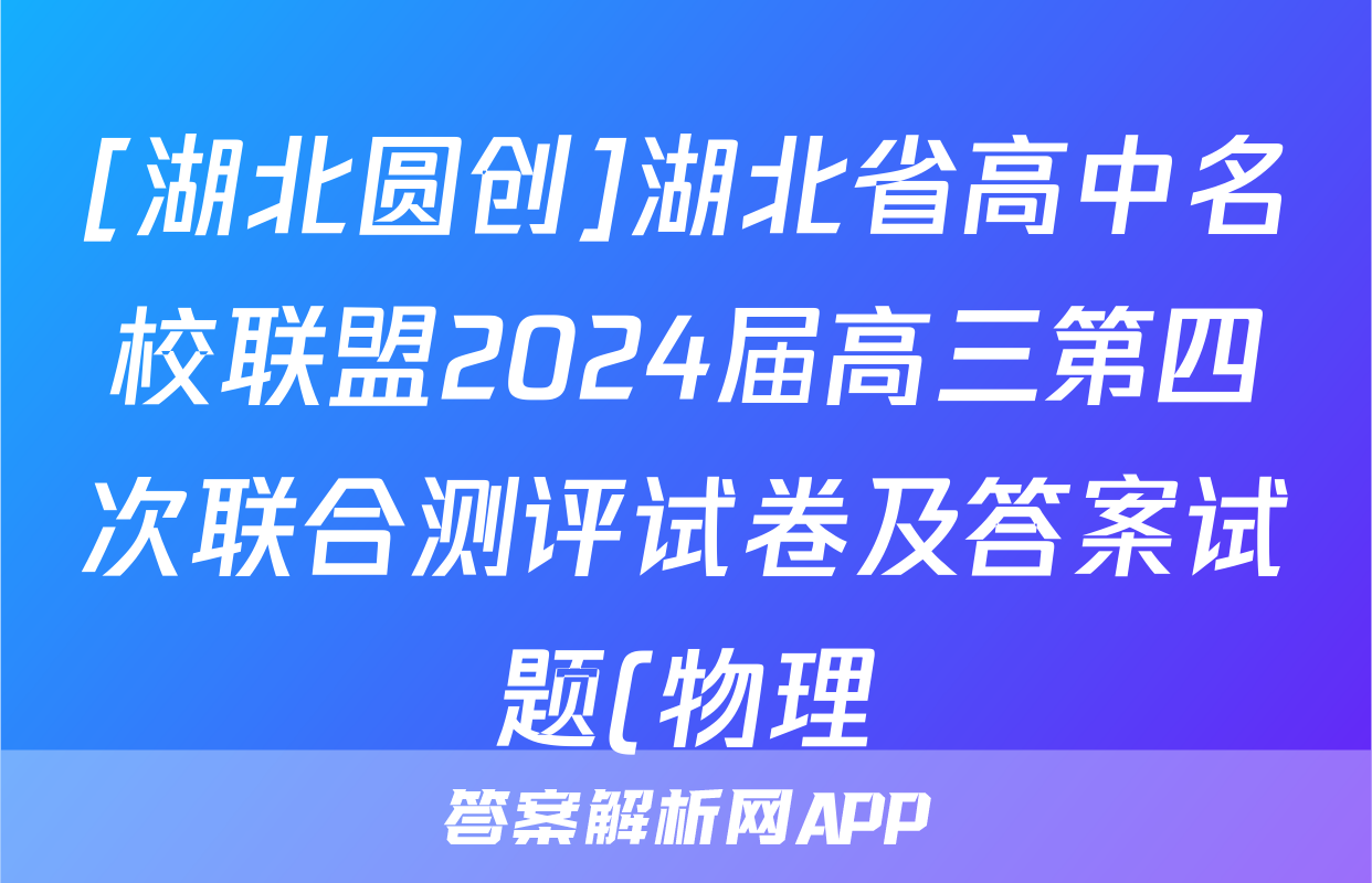 [湖北圆创]湖北省高中名校联盟2024届高三第四次联合测评试卷及答案试题(物理)正在持续更新,目前2024届最新高考模拟示范卷答案网为大家整理了相关试题及答案,供大家查缺补漏,高效提升成绩。