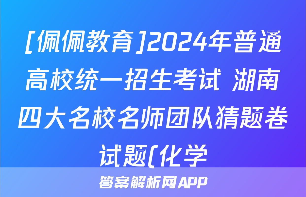 [佩佩教育]2024年普通高校统一招生考试 湖南四大名校名师团队猜题卷试题(化学)