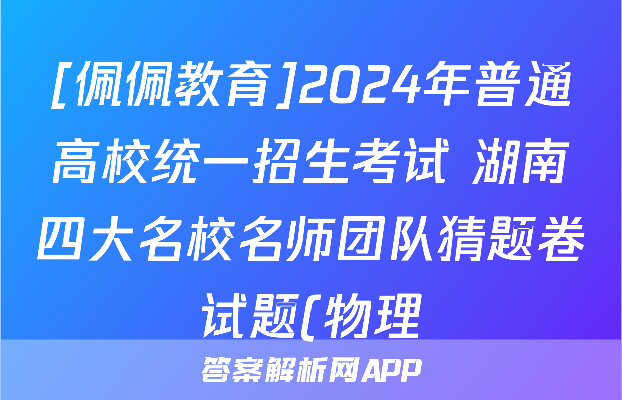 [佩佩教育]2024年普通高校统一招生考试 湖南四大名校名师团队猜题卷试题(物理)