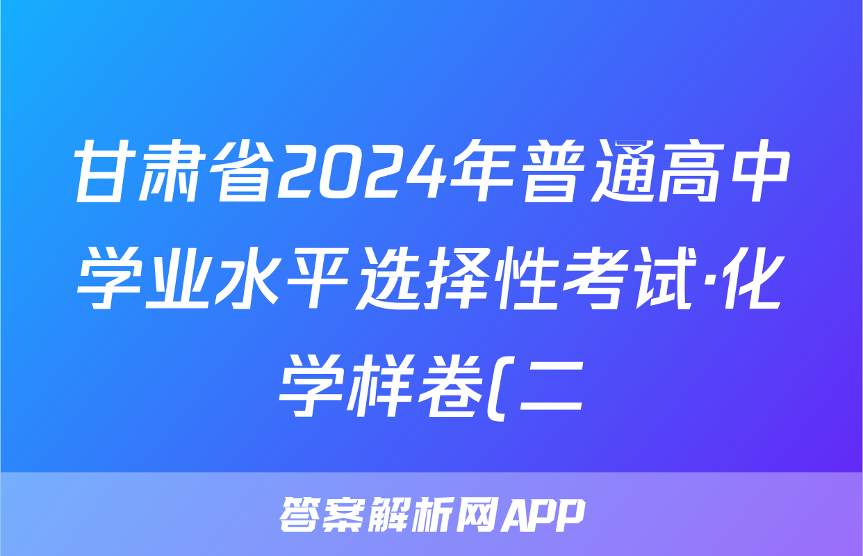 甘肃省2024年普通高中学业水平选择性考试·化学样卷(二)2[24·(新高考)高考样卷·化学·GS]试题正在持续更新,目前2024届最新高考模拟示范卷答案网为大家整理了相关试题及答案,供大家查缺补漏,高效提升成绩。