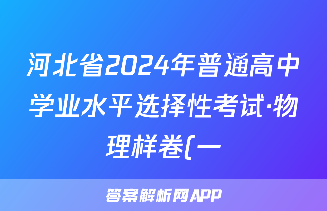 河北省2024年普通高中学业水平选择性考试·物理样卷(一)1[24·(新高考)高考样卷·物理·HEB]答案正在持续更新,目前2024届最新高考模拟示范卷答案网为大家整理了相关试题及答案,供大家查缺补漏,高效提升成绩。