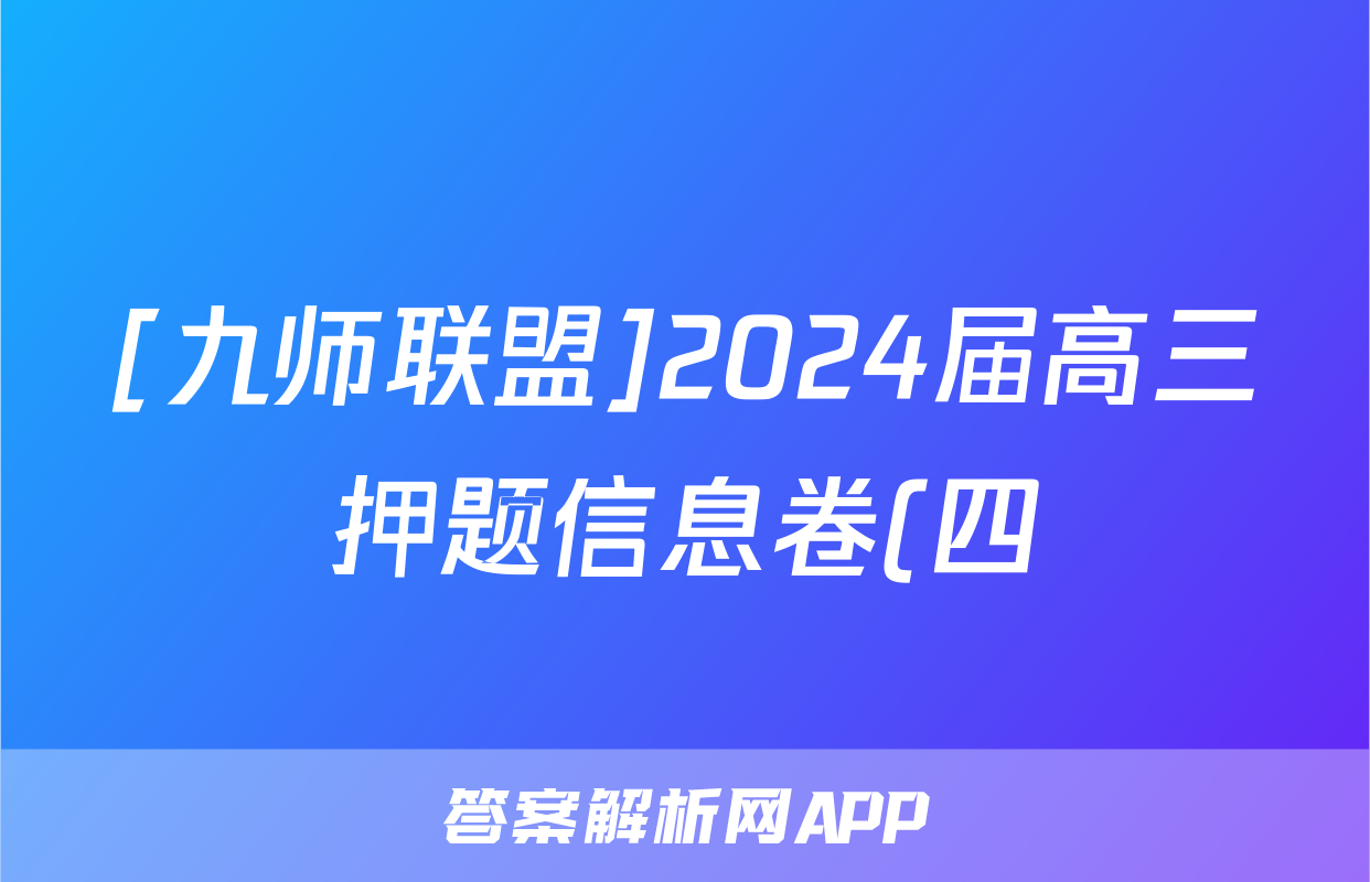 [九师联盟]2024届高三押题信息卷(四)4化学(XKB-G)试题正在持续更新,目前2024届最新高考模拟示范卷答案网为大家整理了相关试题及答案,供大家查缺补漏,高效提升成绩。