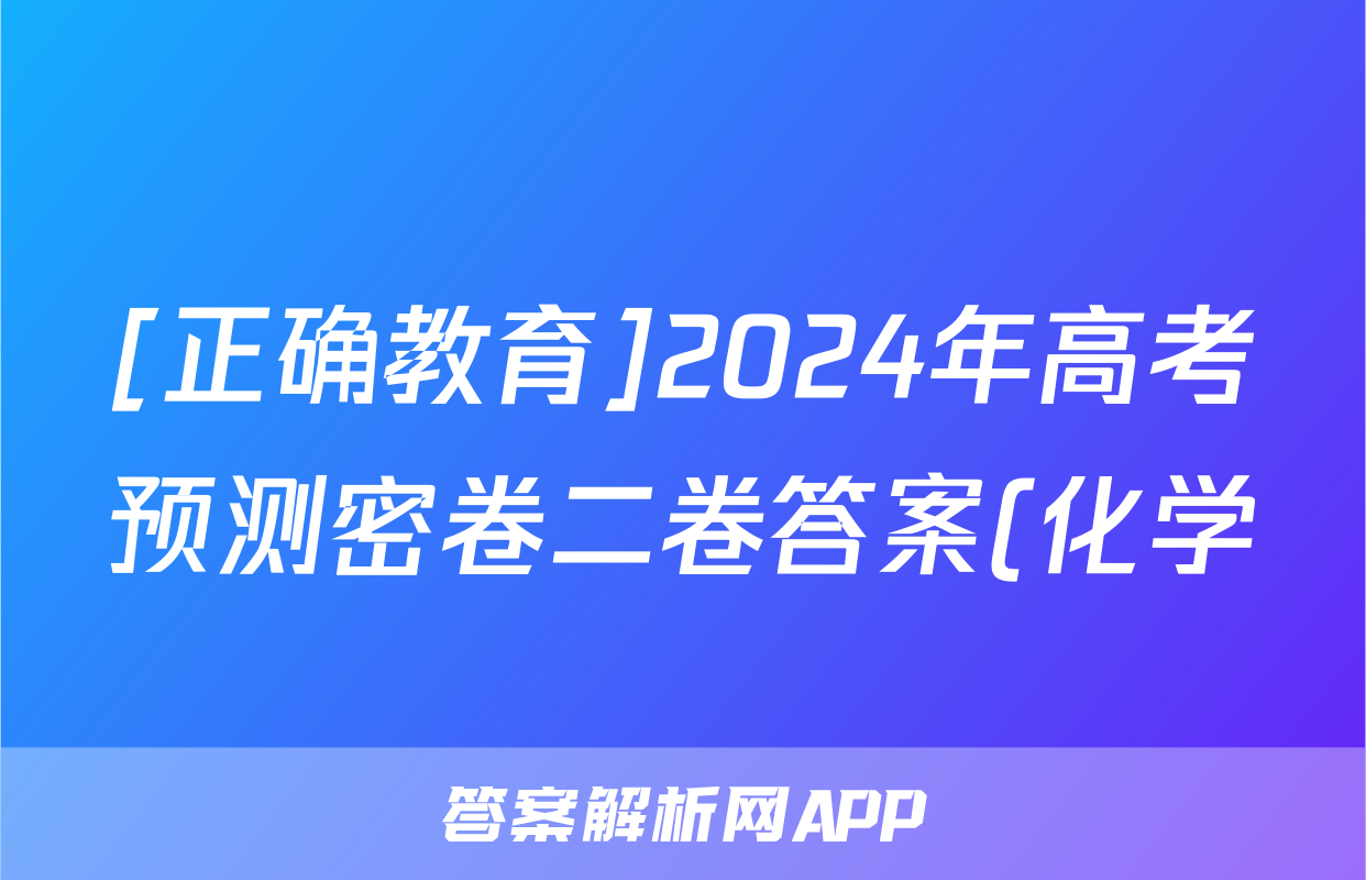 [正确教育]2024年高考预测密卷二卷答案(化学)正在持续更新,目前2024届最新高考模拟示范卷答案网为大家整理了相关试题及答案,供大家查缺补漏,高效提升成绩。