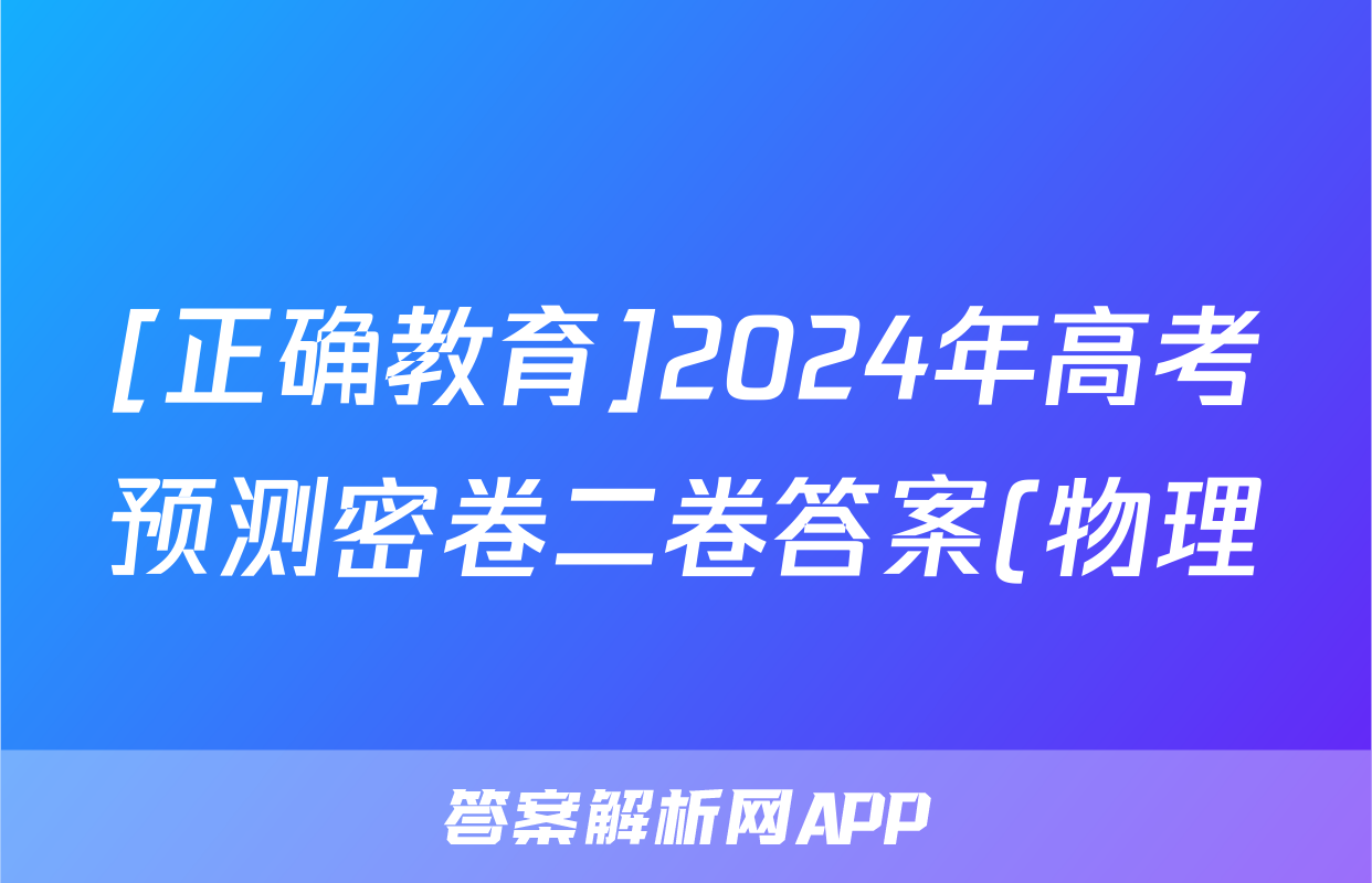 [正确教育]2024年高考预测密卷二卷答案(物理)正在持续更新,目前2024届最新高考模拟示范卷答案网为大家整理了相关试题及答案,供大家查缺补漏,高效提升成绩。