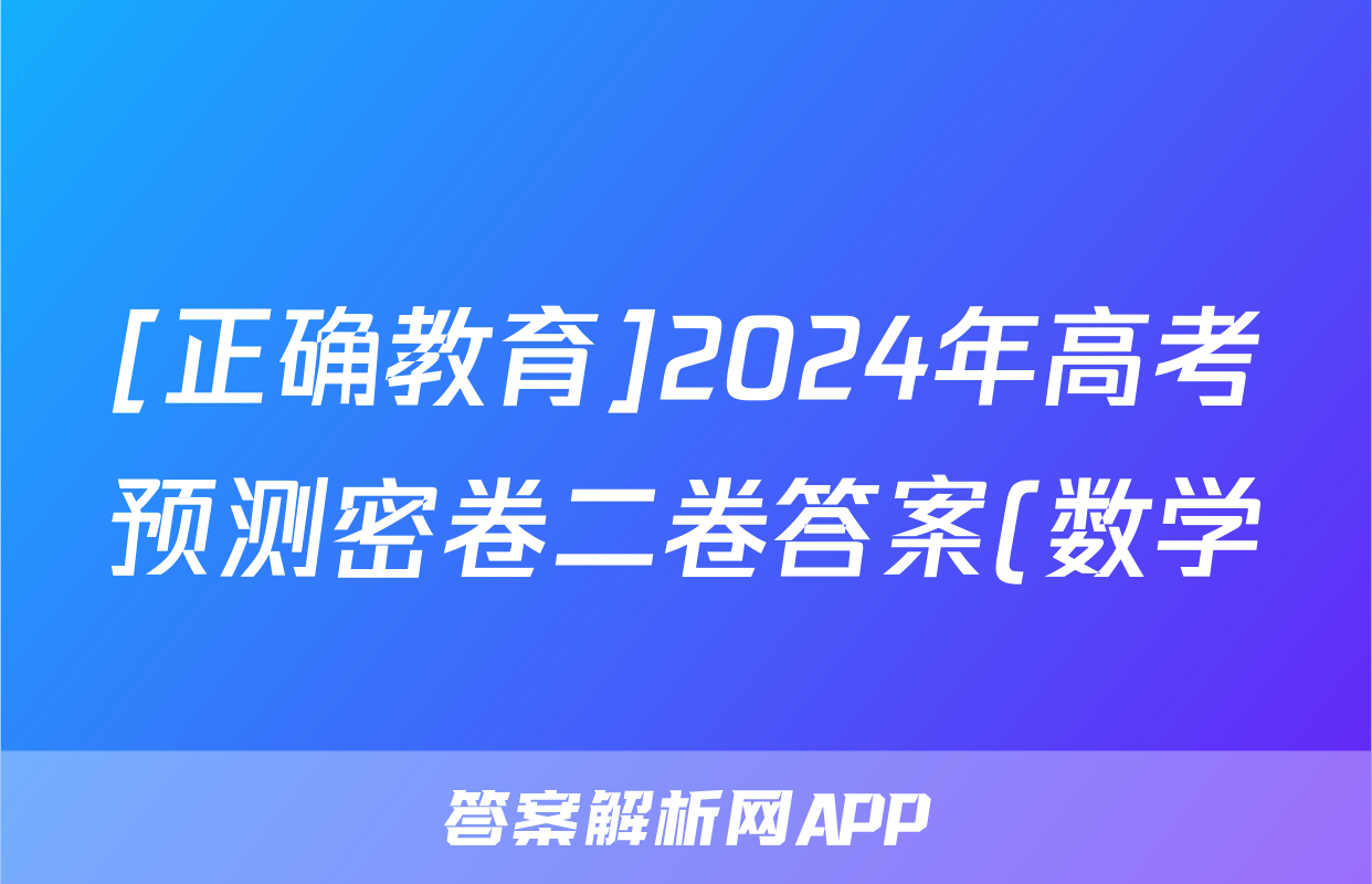 [正确教育]2024年高考预测密卷二卷答案(数学)正在持续更新,目前2024届最新高考模拟示范卷答案网为大家整理了相关试题及答案,供大家查缺补漏,高效提升成绩。