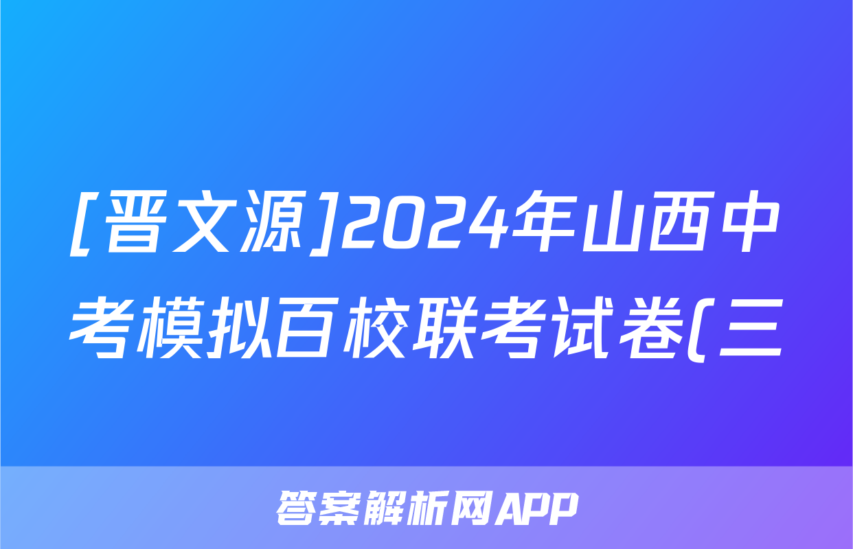 [晋文源]2024年山西中考模拟百校联考试卷(三)3试题(历史)正在持续更新,目前2024届最新高考模拟示范卷答案网为大家整理了相关试题及答案,供大家查缺补漏,高效提升成绩。