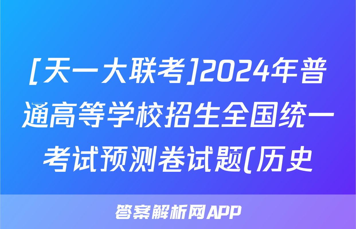 [天一大联考]2024年普通高等学校招生全国统一考试预测卷试题(历史)正在持续更新,目前2024届最新高考模拟示范卷答案网为大家整理了相关试题及答案,供大家查缺补漏,高效提升成绩。