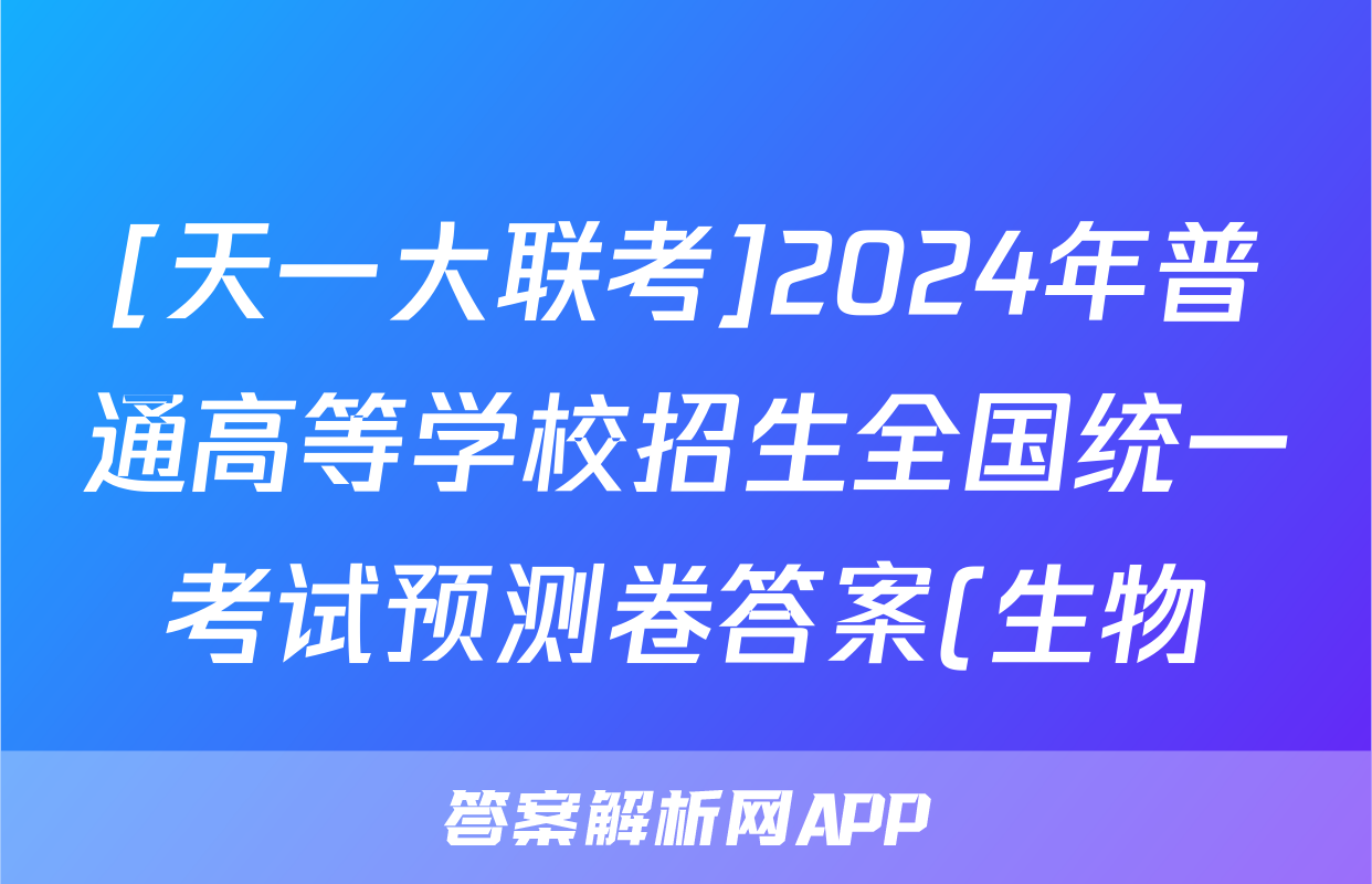 [天一大联考]2024年普通高等学校招生全国统一考试预测卷答案(生物)正在持续更新,目前2024届最新高考模拟示范卷答案网为大家整理了相关试题及答案,供大家查缺补漏,高效提升成绩。