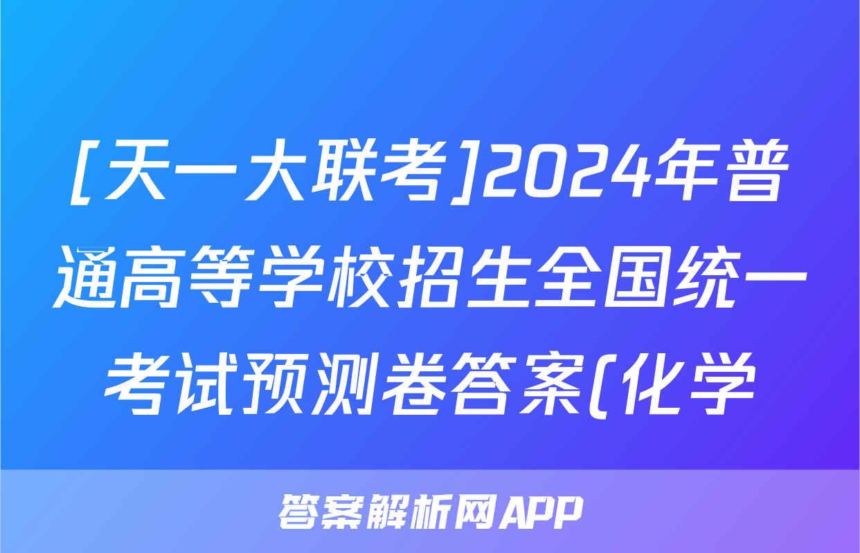 [天一大联考]2024年普通高等学校招生全国统一考试预测卷答案(化学)正在持续更新,目前2024届最新高考模拟示范卷答案网为大家整理了相关试题及答案,供大家查缺补漏,高效提升成绩。