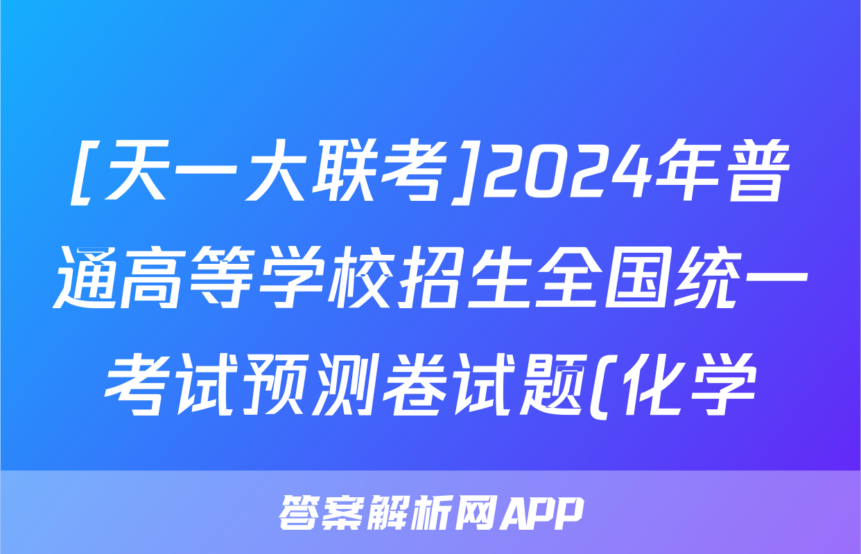 [天一大联考]2024年普通高等学校招生全国统一考试预测卷试题(化学)正在持续更新,目前2024届最新高考模拟示范卷答案网为大家整理了相关试题及答案,供大家查缺补漏,高效提升成绩。