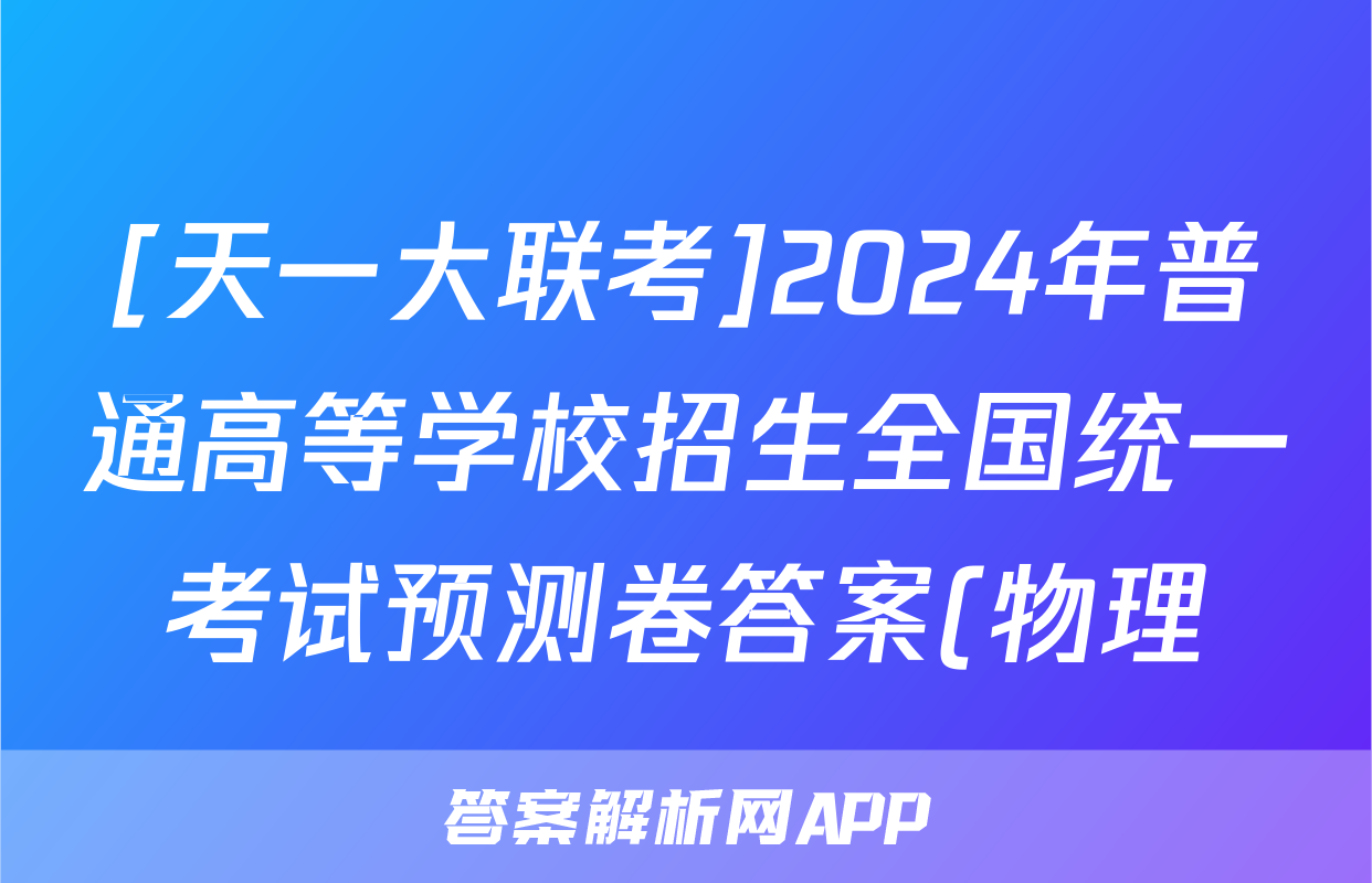 [天一大联考]2024年普通高等学校招生全国统一考试预测卷答案(物理)正在持续更新,目前2024届最新高考模拟示范卷答案网为大家整理了相关试题及答案,供大家查缺补漏,高效提升成绩。