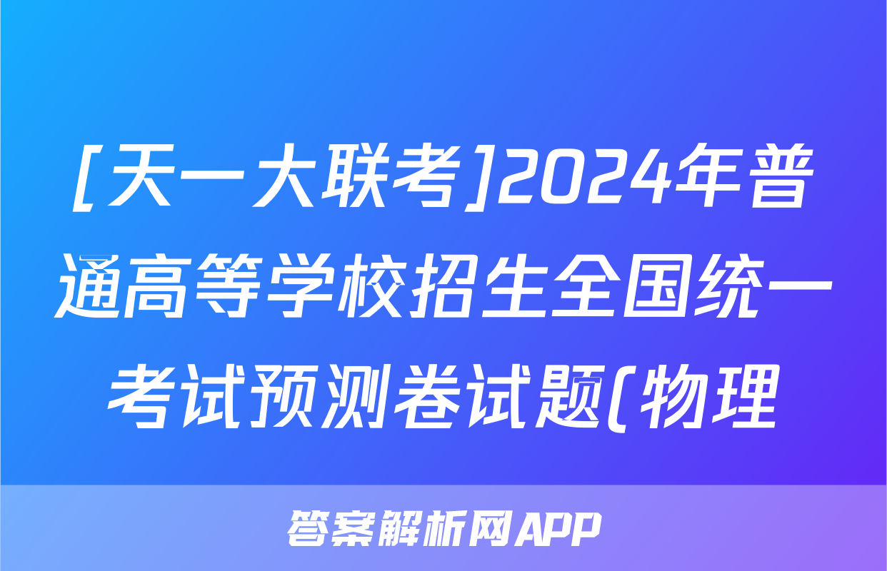 [天一大联考]2024年普通高等学校招生全国统一考试预测卷试题(物理)正在持续更新,目前2024届最新高考模拟示范卷答案网为大家整理了相关试题及答案,供大家查缺补漏,高效提升成绩。