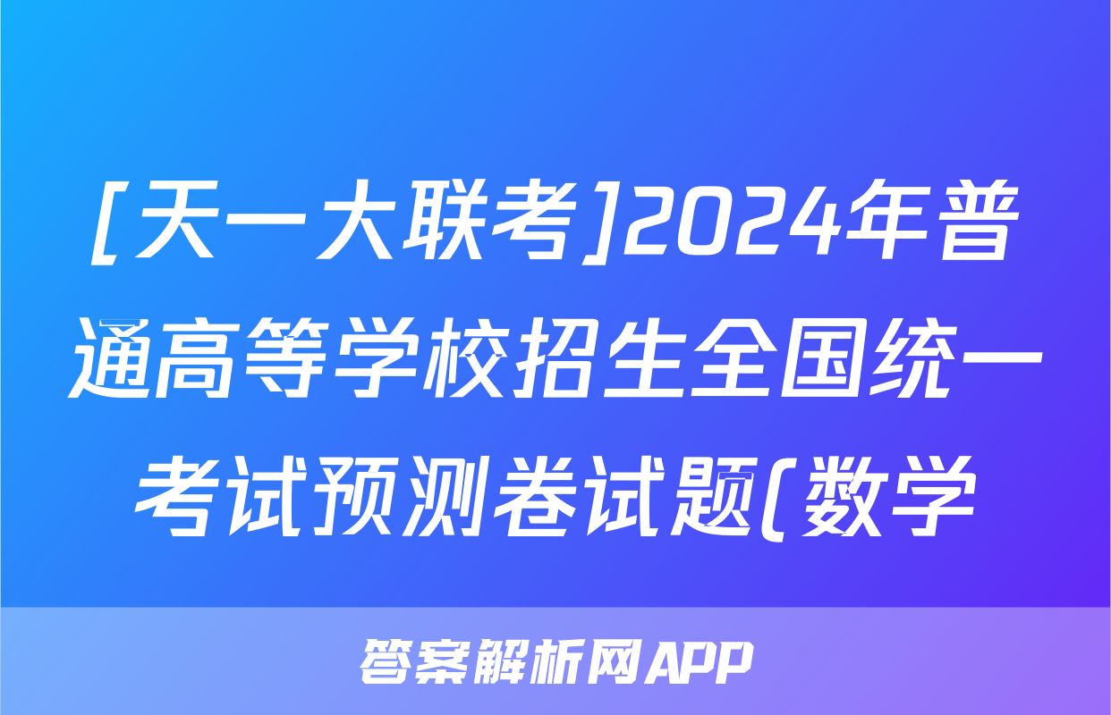 [天一大联考]2024年普通高等学校招生全国统一考试预测卷试题(数学)正在持续更新,目前2024届最新高考模拟示范卷答案网为大家整理了相关试题及答案,供大家查缺补漏,高效提升成绩。