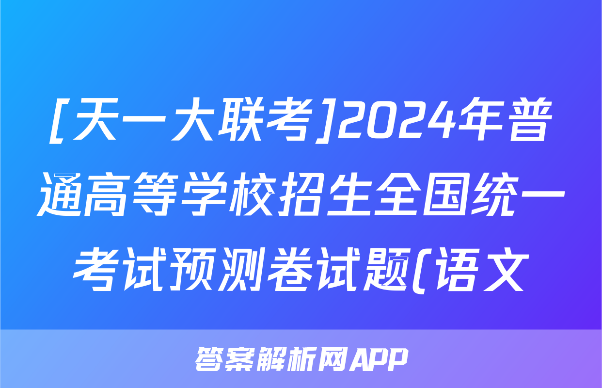 [天一大联考]2024年普通高等学校招生全国统一考试预测卷试题(语文)正在持续更新,目前2024届最新高考模拟示范卷答案网为大家整理了相关试题及答案,供大家查缺补漏,高效提升成绩。