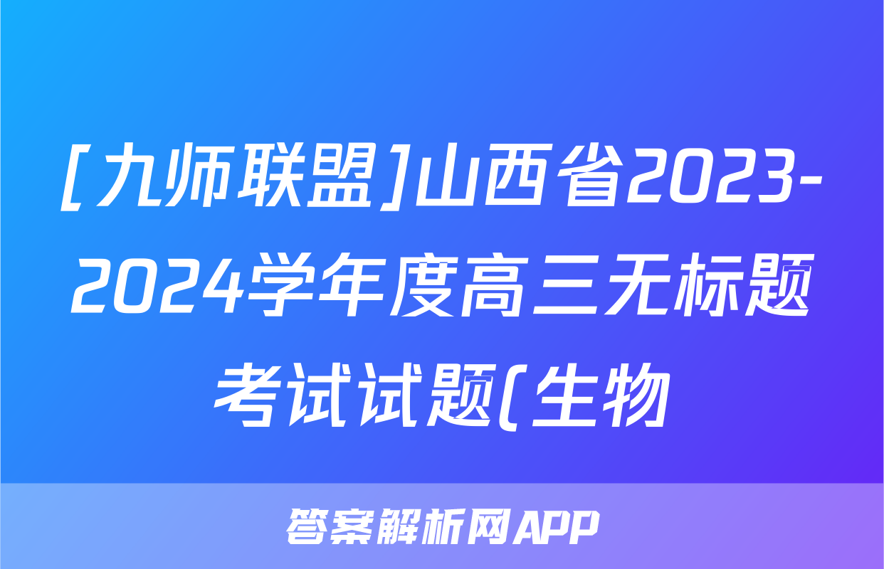 [九师联盟]山西省2023-2024学年度高三无标题考试试题(生物)正在持续更新,目前2024届最新高考模拟示范卷答案网为大家整理了相关试题及答案,供大家查缺补漏,高效提升成绩。