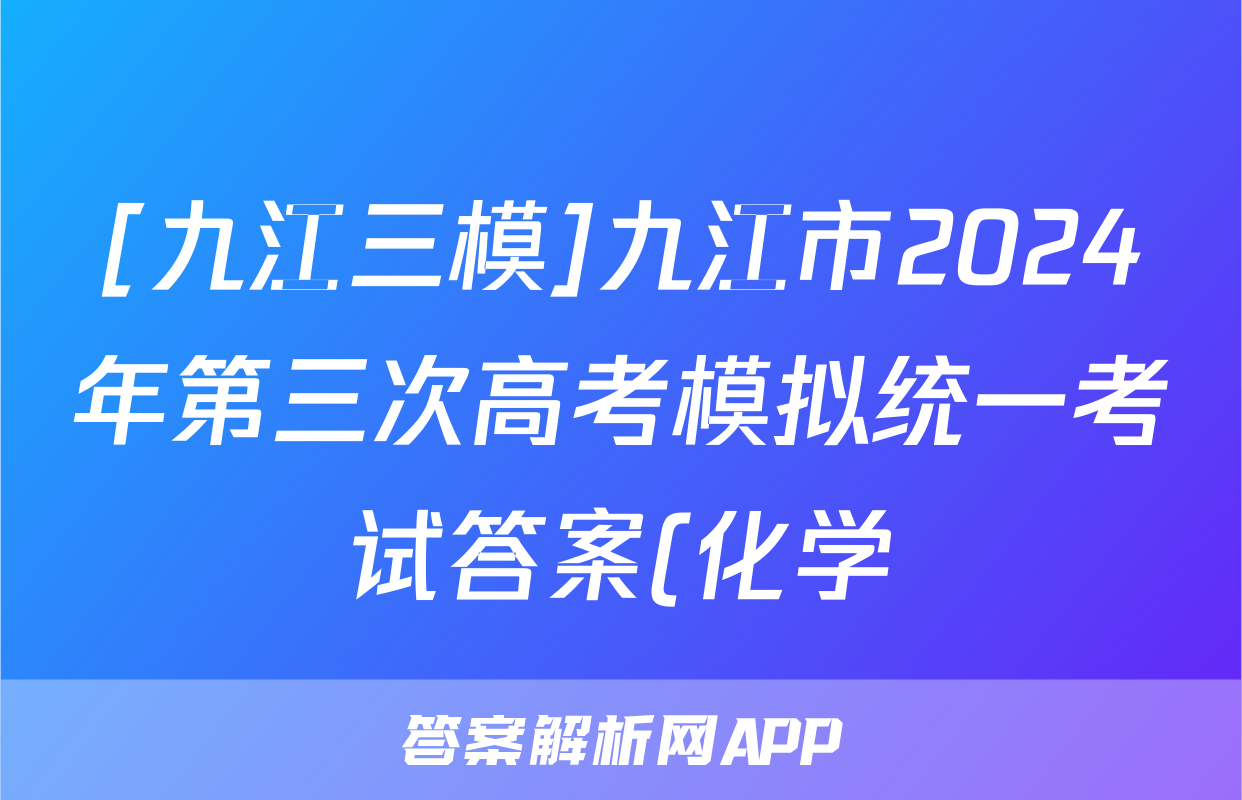 [九江三模]九江市2024年第三次高考模拟统一考试答案(化学)正在持续更新,目前2024届最新高考模拟示范卷答案网为大家整理了相关试题及答案,供大家查缺补漏,高效提升成绩。