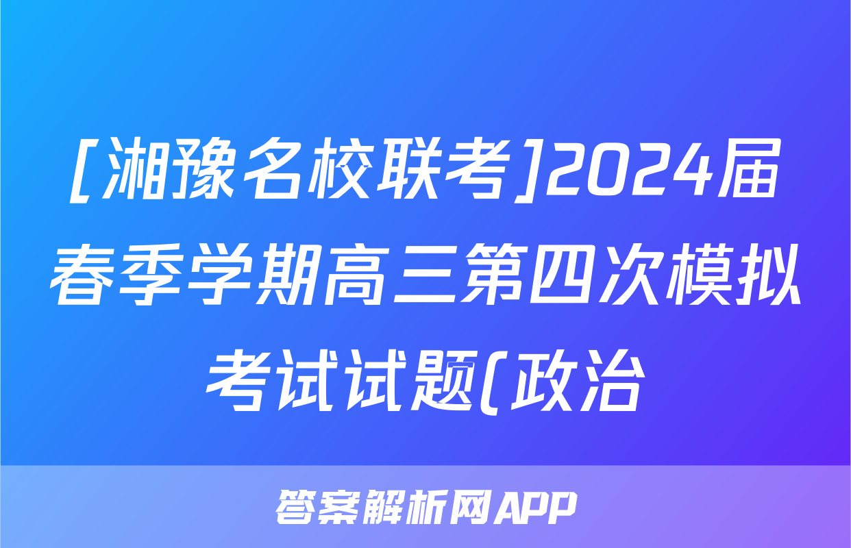 [湘豫名校联考]2024届春季学期高三第四次模拟考试试题(政治)正在持续更新,目前2024届最新高考模拟示范卷答案网为大家整理了相关试题及答案,供大家查缺补漏,高效提升成绩。