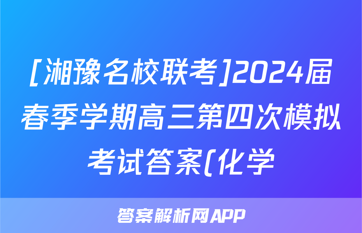 [湘豫名校联考]2024届春季学期高三第四次模拟考试答案(化学)正在持续更新,目前2024届最新高考模拟示范卷答案网为大家整理了相关试题及答案,供大家查缺补漏,高效提升成绩。