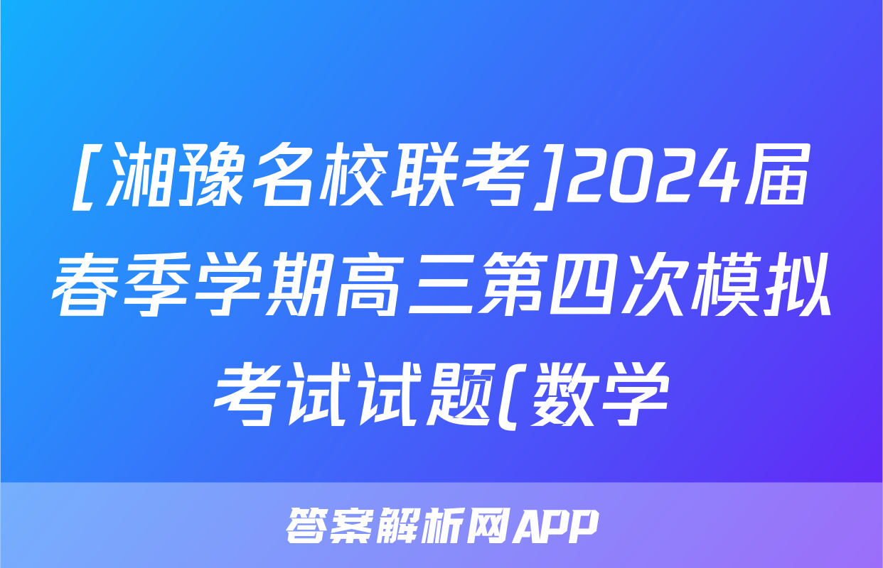 [湘豫名校联考]2024届春季学期高三第四次模拟考试试题(数学)正在持续更新,目前2024届最新高考模拟示范卷答案网为大家整理了相关试题及答案,供大家查缺补漏,高效提升成绩。