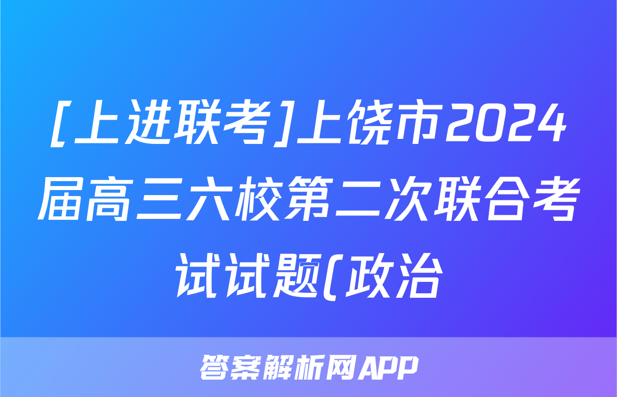 [上进联考]上饶市2024届高三六校第二次联合考试试题(政治)正在持续更新,目前2024届最新高考模拟示范卷答案网为大家整理了相关试题及答案,供大家查缺补漏,高效提升成绩。