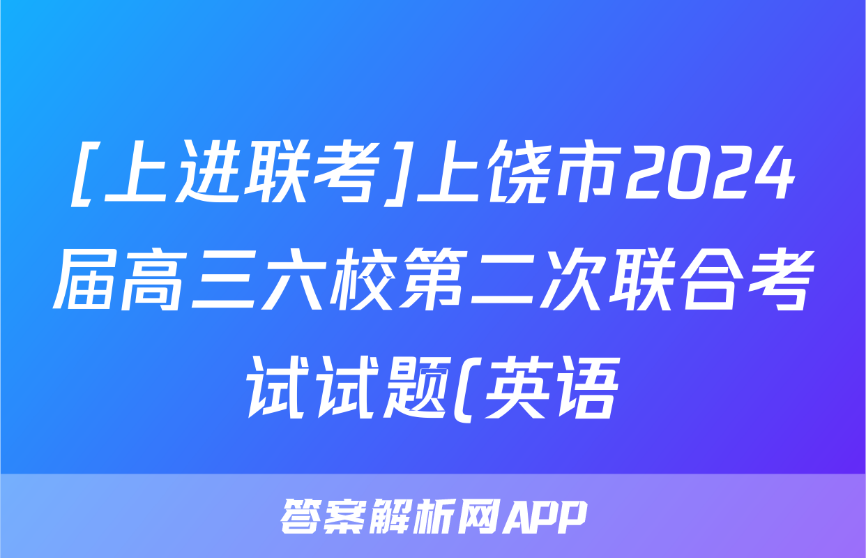 [上进联考]上饶市2024届高三六校第二次联合考试试题(英语)正在持续更新,目前2024届最新高考模拟示范卷答案网为大家整理了相关试题及答案,供大家查缺补漏,高效提升成绩。