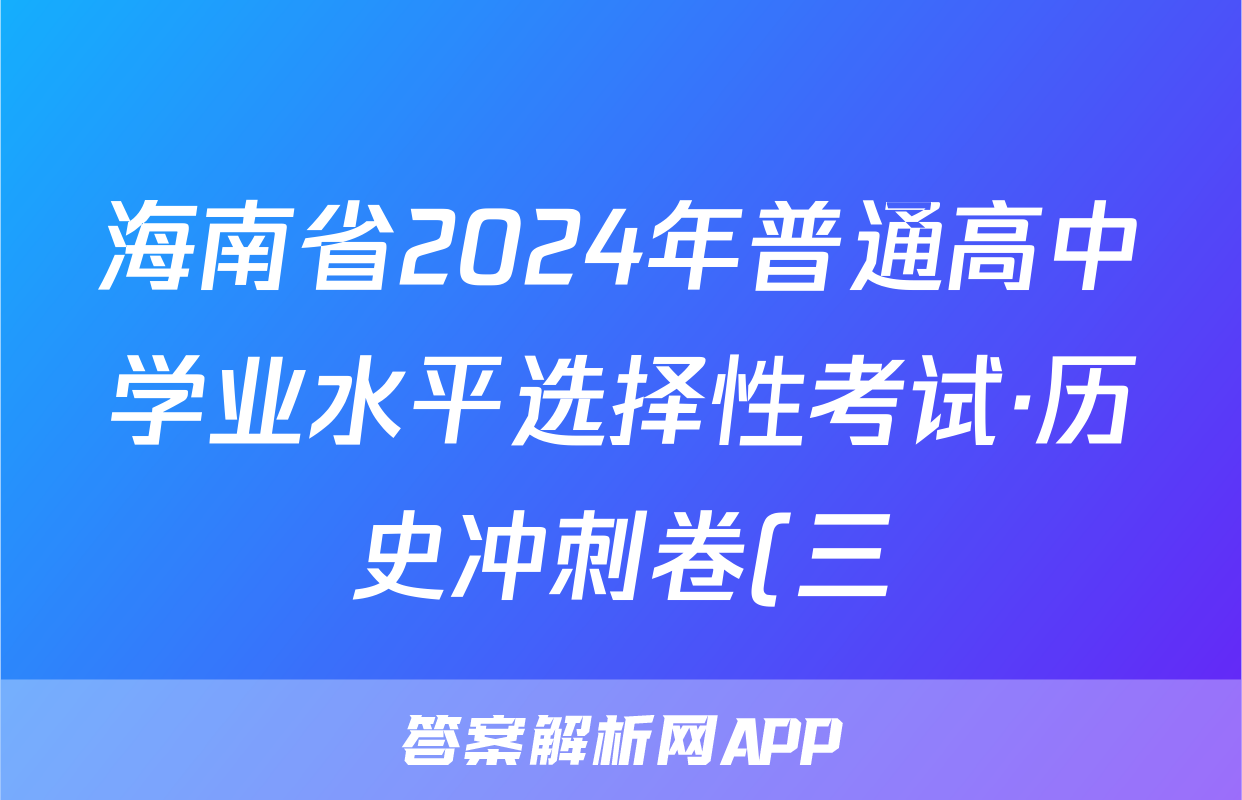 海南省2024年普通高中学业水平选择性考试·历史冲刺卷(三)3[24·(新高考)CCJ·历史·HAIN]答案正在持续更新,目前2024届最新高考模拟示范卷答案网为大家整理了相关试题及答案,供大家查缺补漏,高效提升成绩。