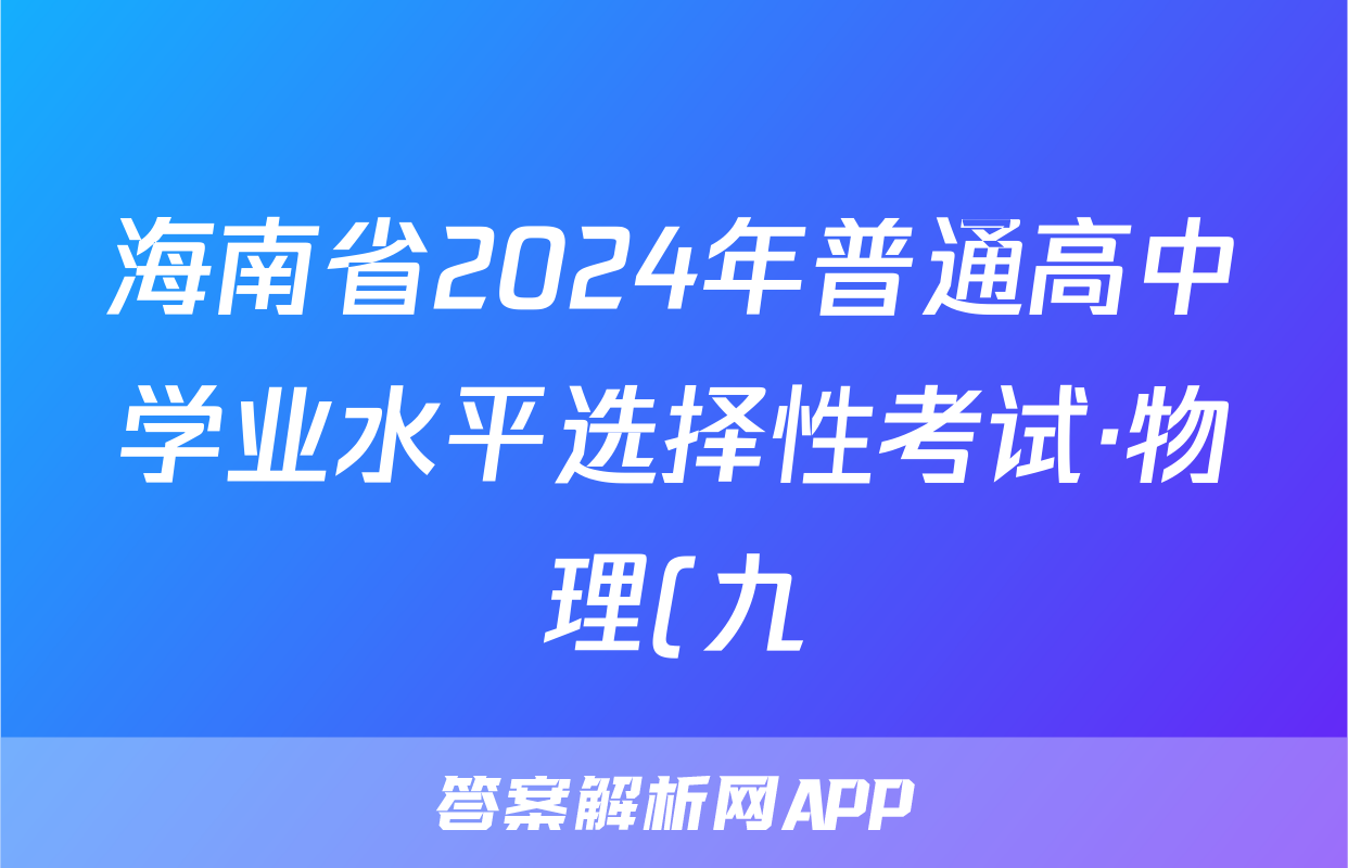 海南省2024年普通高中学业水平选择性考试·物理(九)9[24·(新高考)ZX·MNJ·物理·HAIN]答案