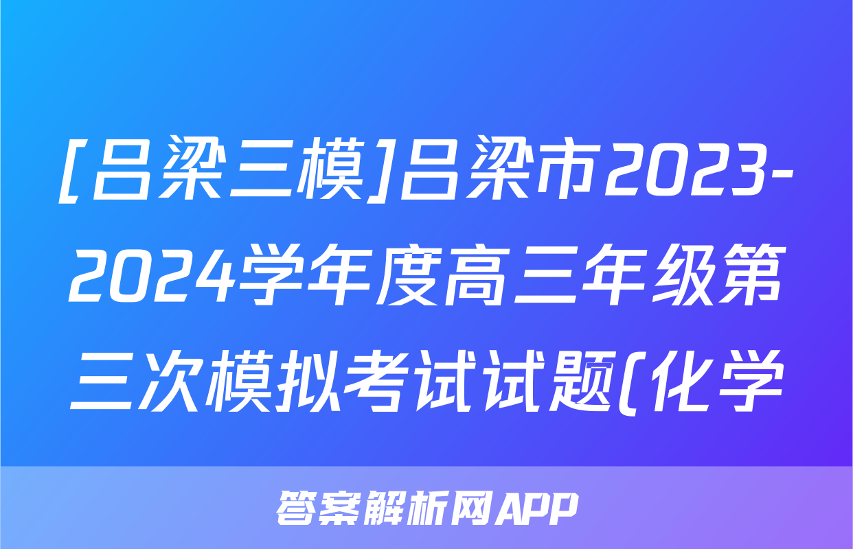 [吕梁三模]吕梁市2023-2024学年度高三年级第三次模拟考试试题(化学)正在持续更新,目前2024届最新高考模拟示范卷答案网为大家整理了相关试题及答案,供大家查缺补漏,高效提升成绩。