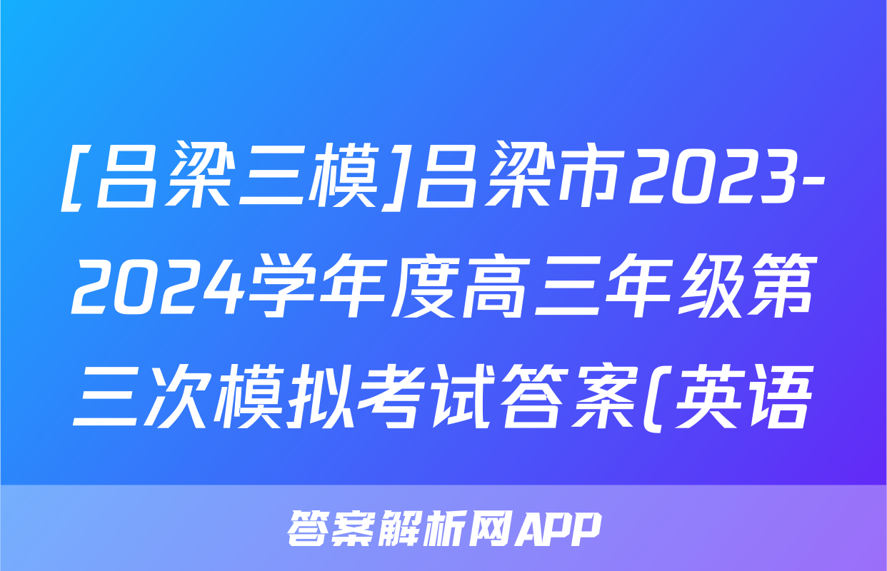 [吕梁三模]吕梁市2023-2024学年度高三年级第三次模拟考试答案(英语)正在持续更新,目前2024届最新高考模拟示范卷答案网为大家整理了相关试题及答案,供大家查缺补漏,高效提升成绩。