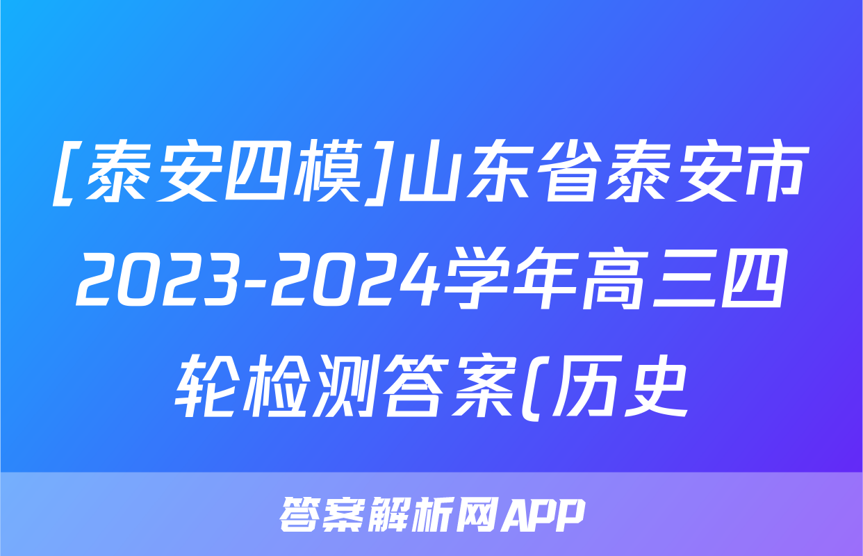 [泰安四模]山东省泰安市2023-2024学年高三四轮检测答案(历史)正在持续更新,目前2024届最新高考模拟示范卷答案网为大家整理了相关试题及答案,供大家查缺补漏,高效提升成绩。