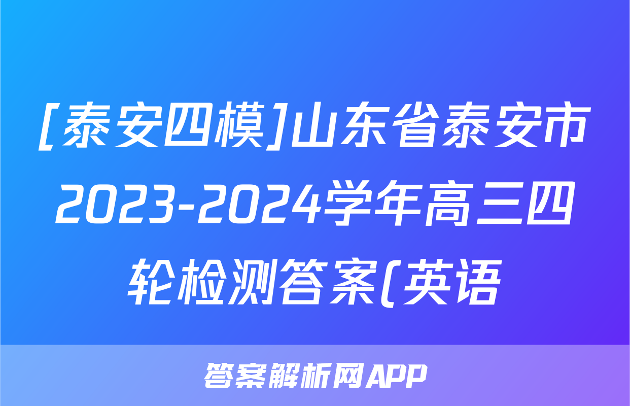 [泰安四模]山东省泰安市2023-2024学年高三四轮检测答案(英语)正在持续更新,目前2024届最新高考模拟示范卷答案网为大家整理了相关试题及答案,供大家查缺补漏,高效提升成绩。