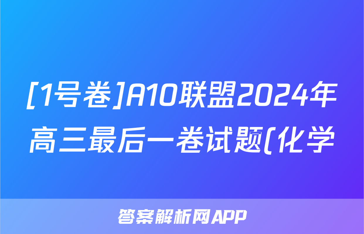 [1号卷]A10联盟2024年高三最后一卷试题(化学)正在持续更新,目前2024届最新高考模拟示范卷答案网为大家整理了相关试题及答案,供大家查缺补漏,高效提升成绩。