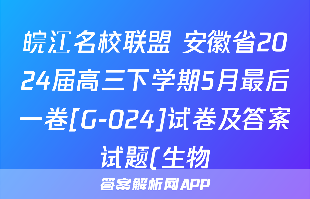 皖江名校联盟 安徽省2024届高三下学期5月最后一卷[G-024]试卷及答案试题(生物)正在持续更新,目前2024届最新高考模拟示范卷答案网为大家整理了相关试题及答案,供大家查缺补漏,高效提升成绩。